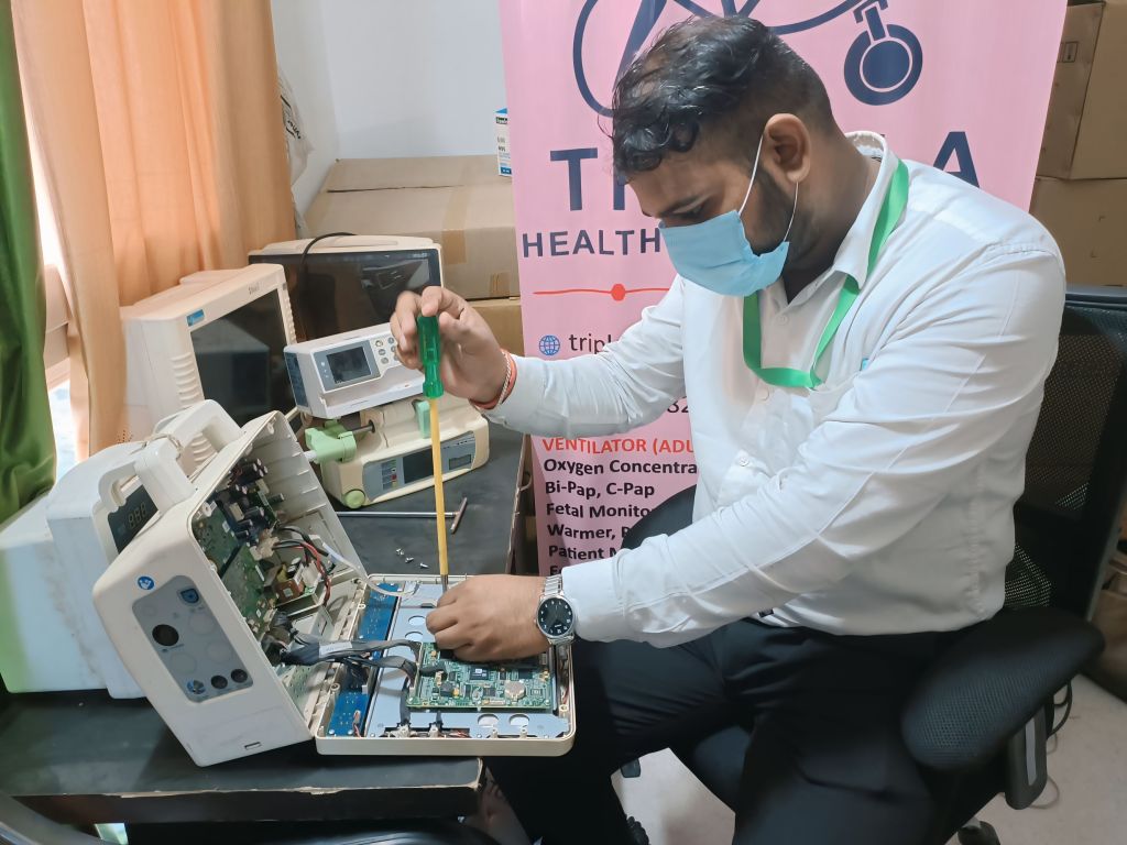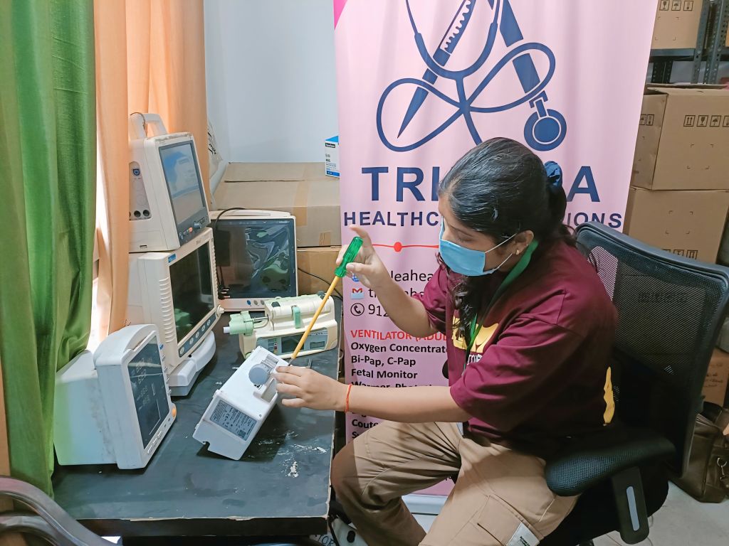 Our dedicated biomedical technician in action, ensuring every piece of medical equipment functions flawlessly. At Triple A Healthcare Solutions, reliability begins with expert care.